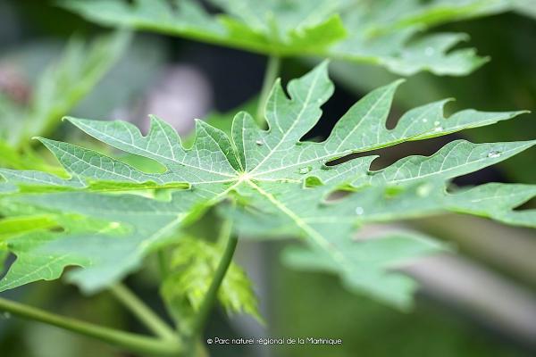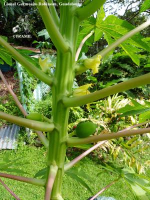 Petit arbre à tige unique rarement ramifiée, terminée par un bouquet de grandes feuilles de 20 à 60 cm, habituellement digitées. Fleurs mâles garnies d'étamines formant des panicules de 10 cm ou davantage, fleurs femelles à corolle jaune avec pétales en spirale. Fruit sphérique ou formant un globe légèrement allongé dont le diamètre peut atteindre 30 cm, jaune ou orangé, avec un suc laiteux; nombreuses graines noires.