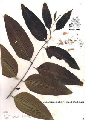 Arbre jusqu'à 20 m de haut, écorce lisse et grise. Feuilles composées glabres, de plus de 35 cm, 4 à 8 paires de folioles, oblongues, obovales ou arrondies de 7 à 20 cm, glabres, avec une face supérieure vert brillant et lustrée, pâle sur la face inférieure, limbe chartacé. Fleurs jaunes groupées en grappes pendantes, axillaires; sépales arrondis, pétales jaunes de 1,5 cm, avec des nervures sombres proéminentes. Fruit, gousse subcylindrique, ligneuse, ocre brun, de 8 à 15 cm. Graines brunes, aplaties, recouverte d'une pulpe collante.