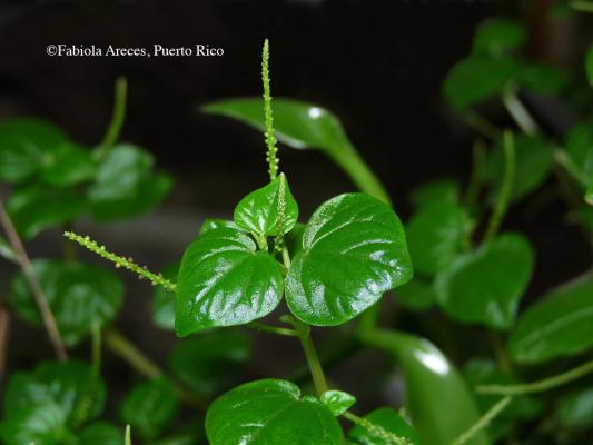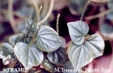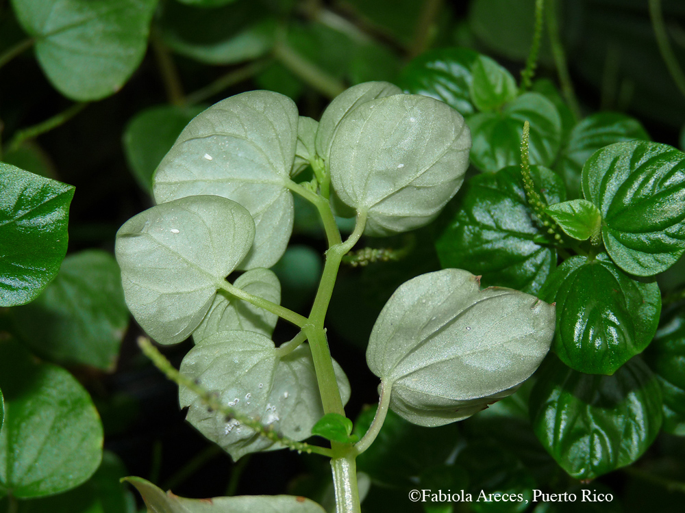 Plante herbacée dressée ou ascendante, jusqu'à 35 cm, tiges succulentes. Feuilles alternes, minces, ovales, 15 à 25 mm, aiguës ou obtues, légèrement cordées ou arrondies à la base, avec cinq nervures principales. Épis terminaux simples, axillaires ou opposés aux feuilles, de 2 à 5 cm; bractées arrondies-peltées, fleurs minuscules dispersées. Fruit, baies subglobuleuses ou ellipsoïdes, de 0,5 à 0,6 mm de diamètre.