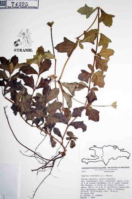 Herbacée pérenne, à branches rampantes ou ascendantes, avec des racines au niveau des nœuds. Feuilles opposées, sessiles, elliptiques à obovées de 2 à 12 cm, obtuses à aiguës à la pointe, plus ou moins cunéiformes à la base, aux bords découpés en dents-de-scie, souvent lobées. Capitules solitaires en pédoncules axillaires ou terminaux; involucrés en forme de clochette; capitules radiés, jaunes, approximativement au nombre de 10. Akène ovoïde, tuberculé.